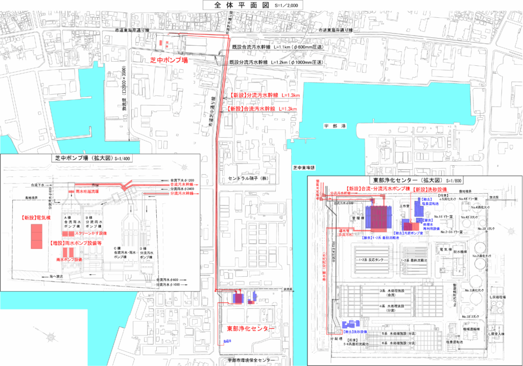 芝中ポンプ場は昭和35年の供用開始から60年以上が経過しており、耐震性能不足や設備老朽化が進行しており、下記の内容で改築を実施するものです。